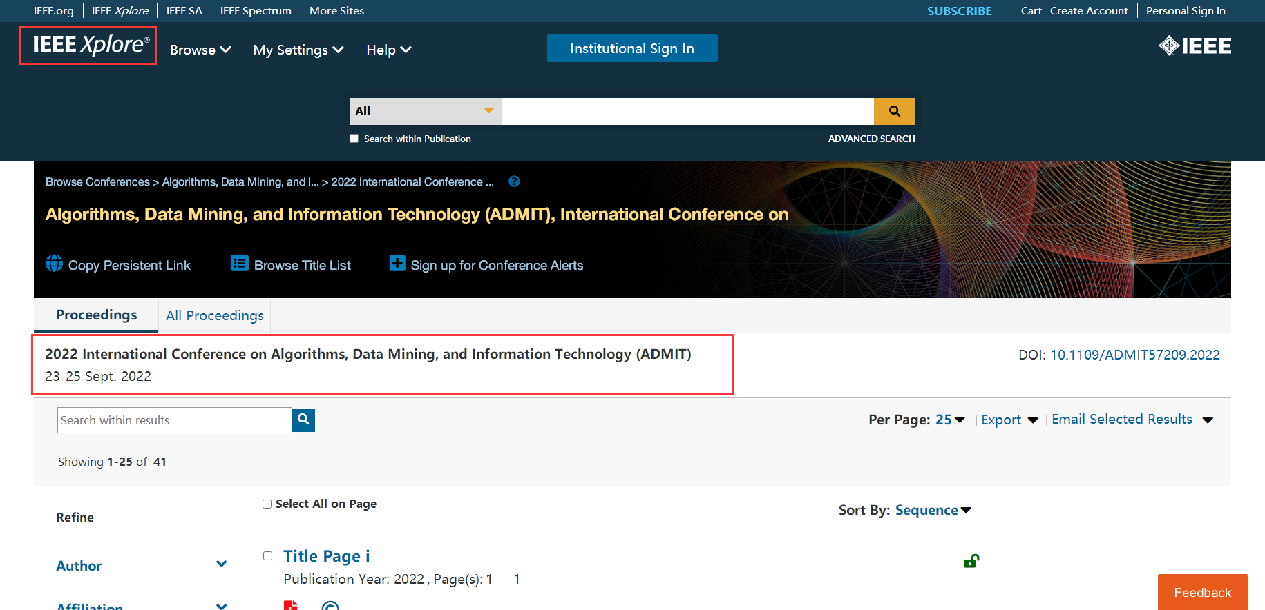 ADMIT 2022 Conference Proceedings have been published by Conference Publishing Services (CPS) in the IEEE Xplore (ISBN: 978-1-6654-5472-8) (Proceedings) and indexed by Ei Compendex and Scopus successfully within 1 month after publication.